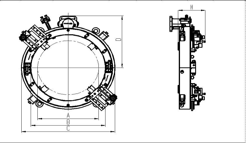 5.拔出管道坡口機上瓣和下瓣上的安裝插銷,手動旋轉刀架,調整刀架底部飛輪與撥刀裝置的配合,以撥刀裝置順利撥動飛輪不卡止為合格;