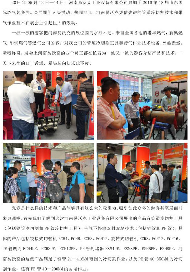 我司參加2016第18屆山東國際燃氣裝備展冷切割和帶氣作業技術引轟動