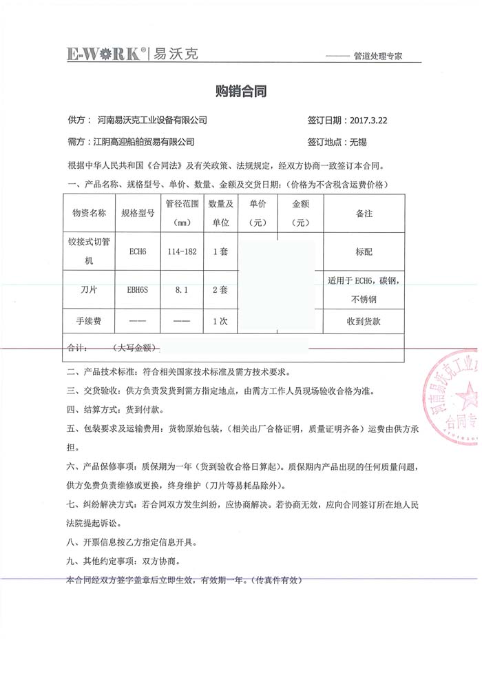 2017年江陰高迎船舶貿易有限公司合作業績