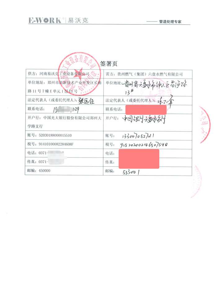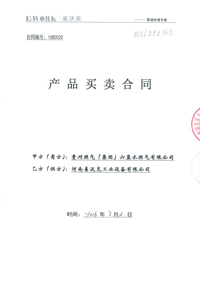 2016年貴州燃氣(集團)六盤水燃氣有限公司合作業績