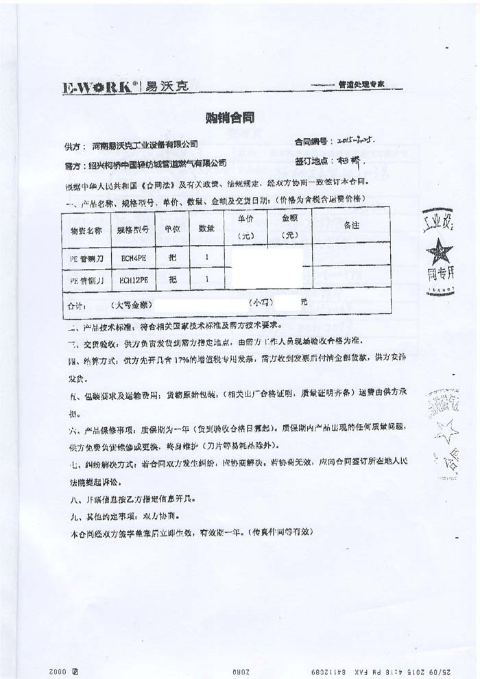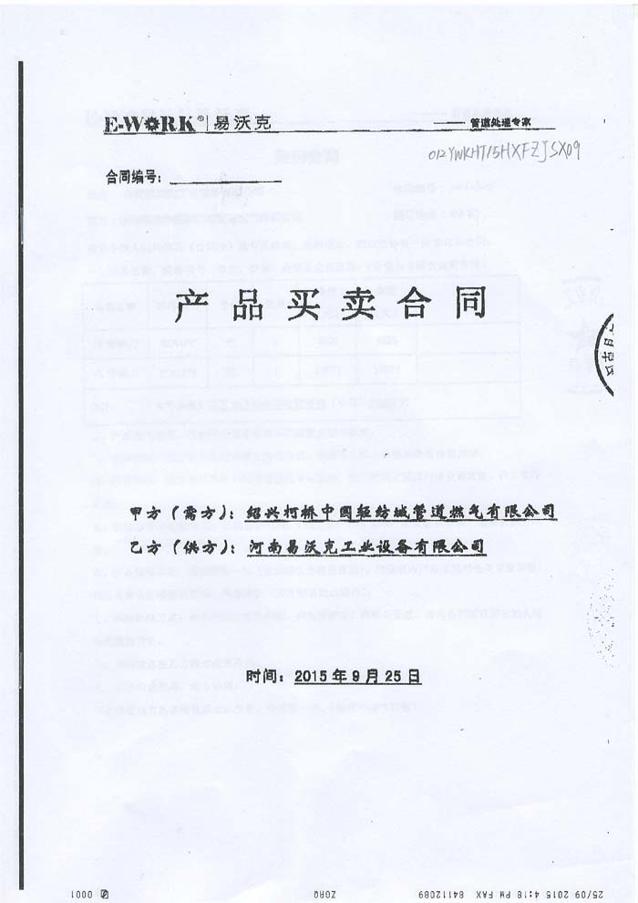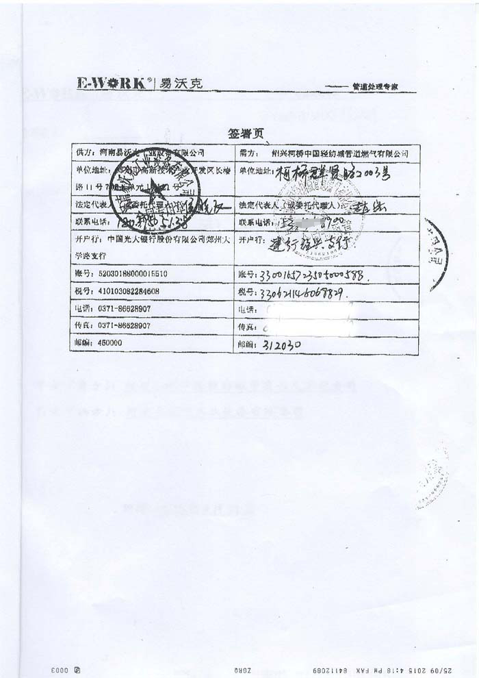 2015年浙江紹興柯橋中國輕紡城管道燃氣有限公司合作業績