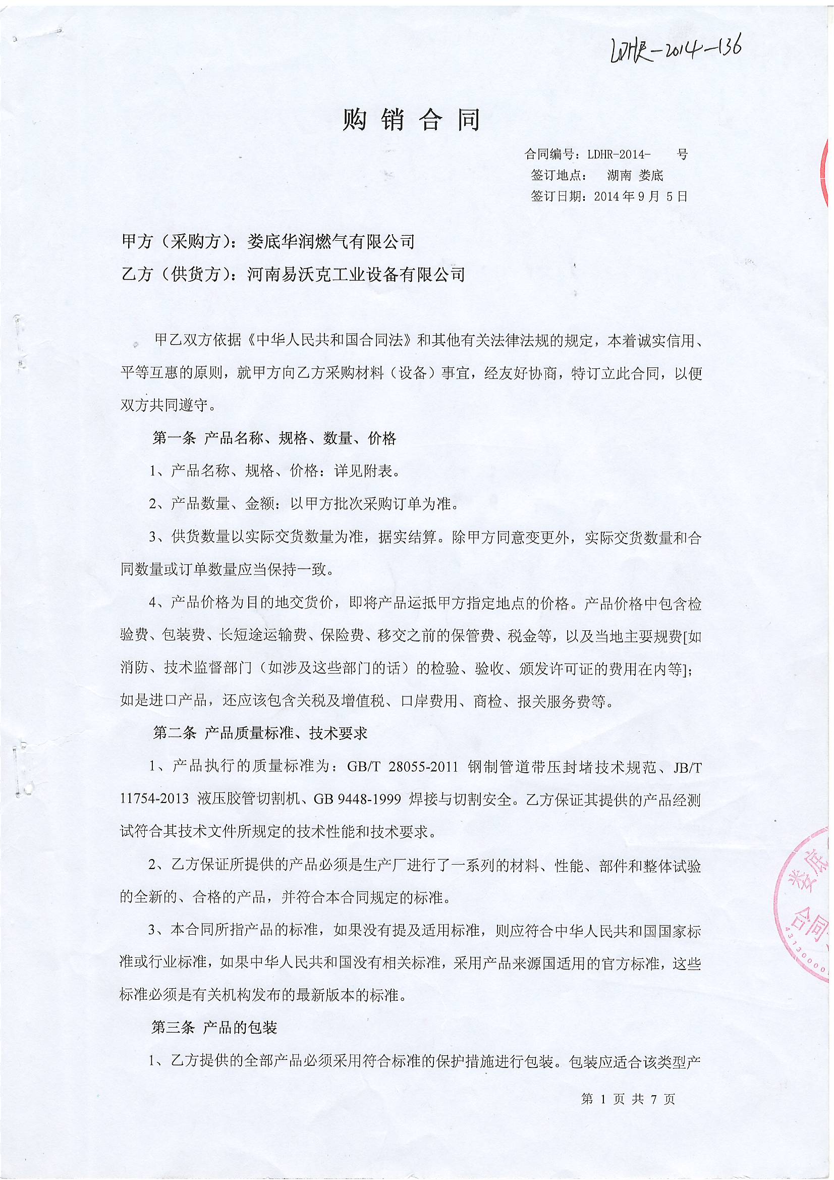 2014年湖南婁底華潤燃氣有限公司合作業績